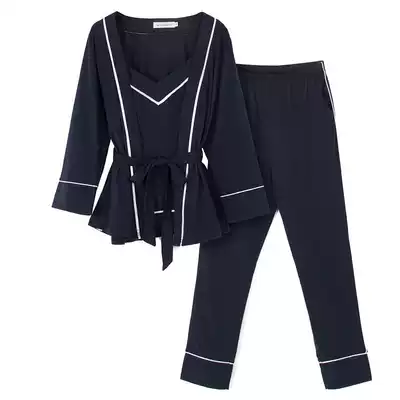 Japanese women's pajamas cotton sexy three-piece autumn V-neck suspender robe long sleeve slim body Spring and Autumn home wear