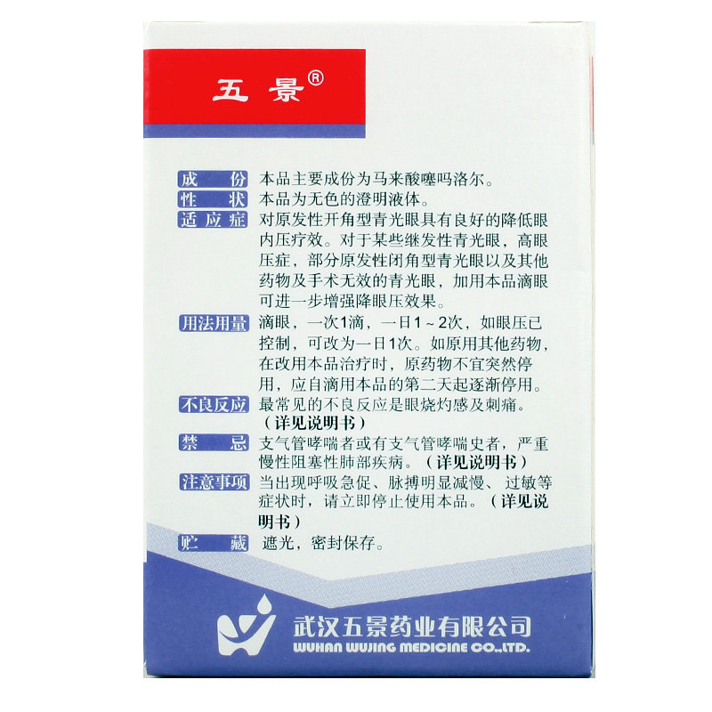 As low as 19 8 boxes) Wujing timolol maleate eye drops 5ml*1 bottle box glaucoma ocular hypertension eye drops
