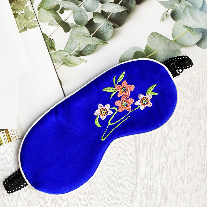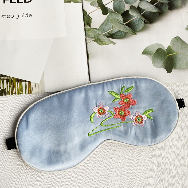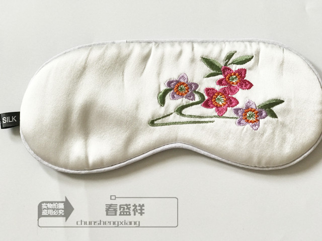 Double-sided genuine silk blindfold sleep-free eye mask light and genuine silk embroidered peach eyewear multicolored
