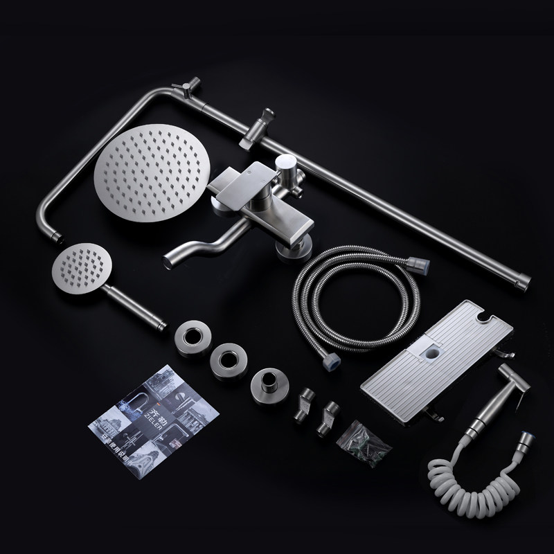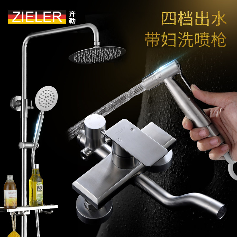 Zieler 304 stainless steel four-gear shower head suit with woman washers hand spray hot and cold water shower shelf double shower