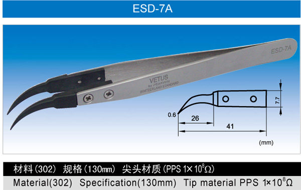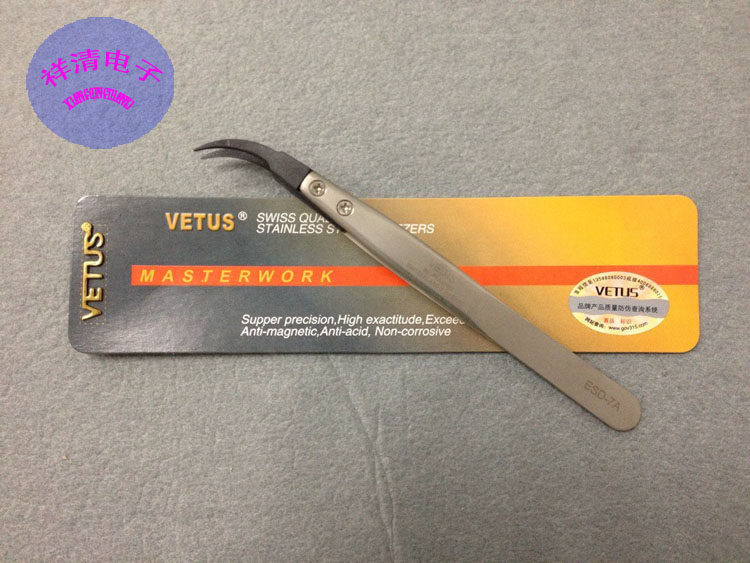 Vitus VETUS high precision high elastic anti-static non-magnetic elbow replaceable head stainless steel tweezers ESD-7A