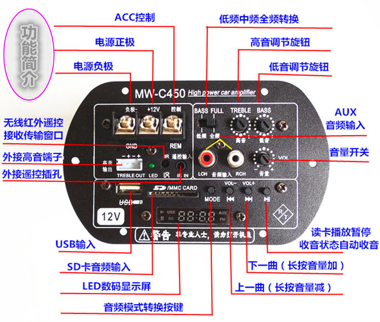 Ultra Hi car 450W Heavy low sound cannons High power power amplifier board 12v 24 V on-board Bluetooth power amplifiers Show the radio