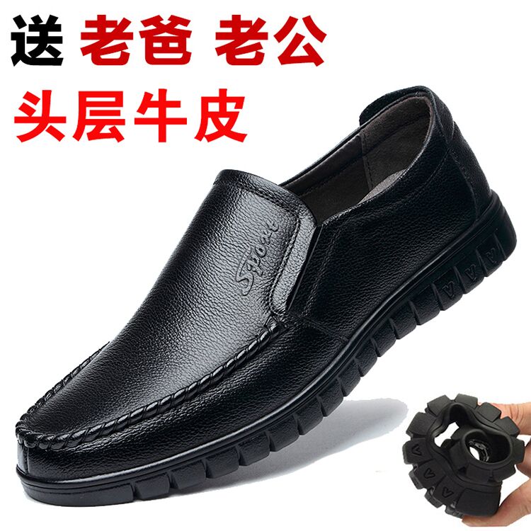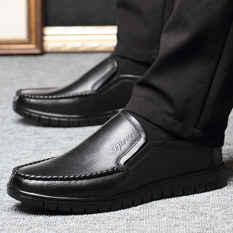 Leather Shoes Men Genuine Leather Fall Business Bull Leather Soft Bottom Middle Aged Men Shoes Casual Black Working Seniors Dad Shoes