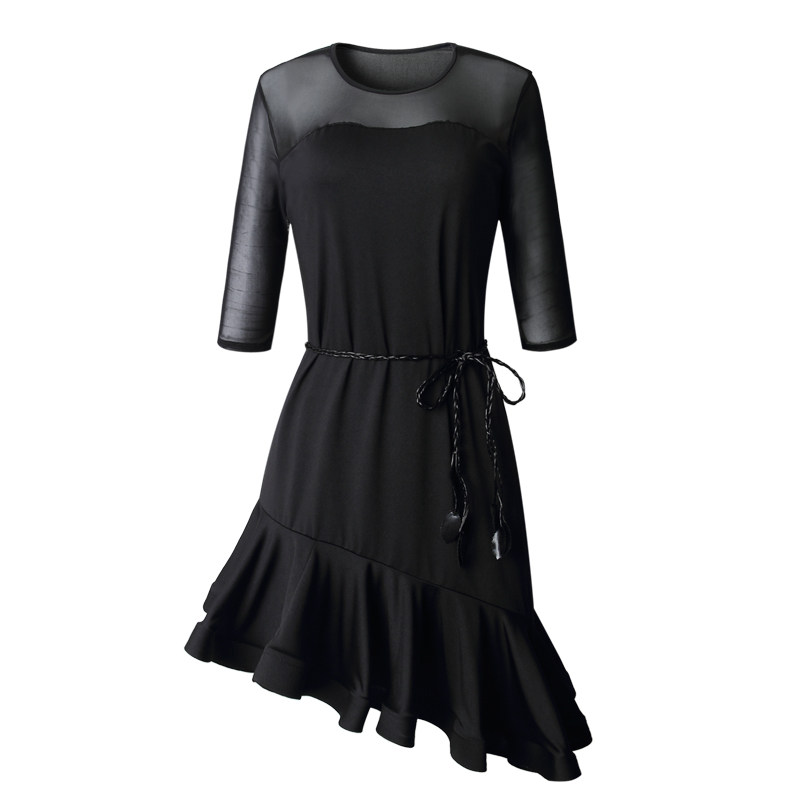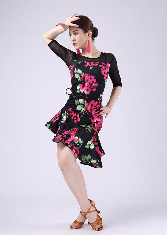 Spring and summer new adult Latin dance dress women adult practice dress dance skirt angled fishbone skirt medium short sleeves