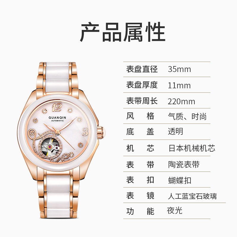 Crown Violin Lady Watches Fashion Ceramic Large Dial Fully Automatic Mechanical Watch Waterproof Hollowed-out Korean Version Swiss Watches