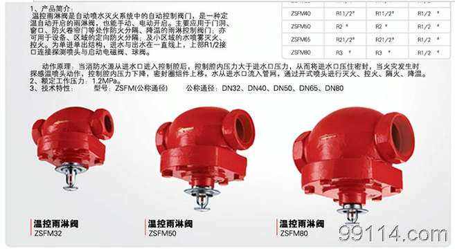 Fire temperature control (sensing) deluge valve ZSFW temperature-sensing release valve temperature-sensing glass ball deluge valve temperature 68 ℃