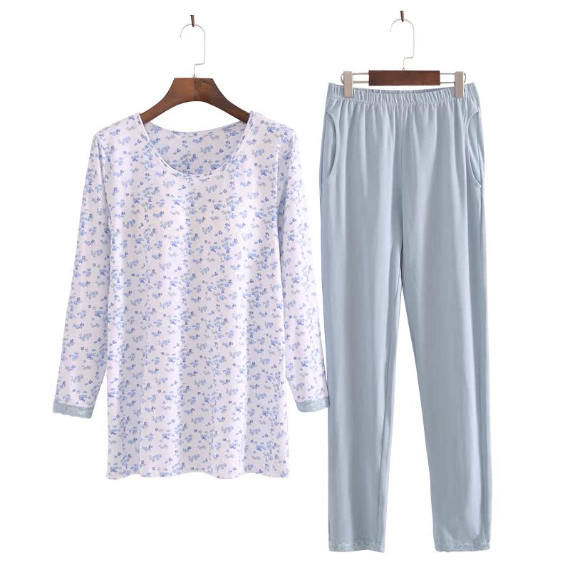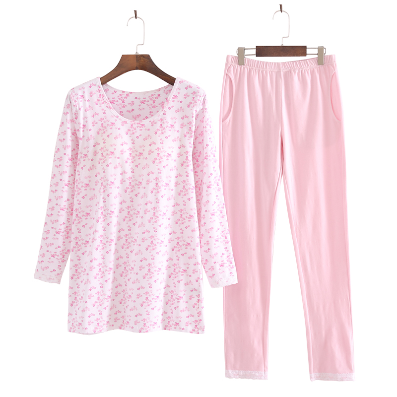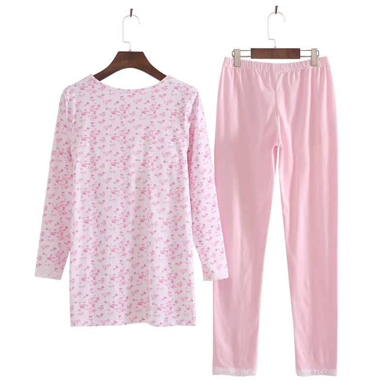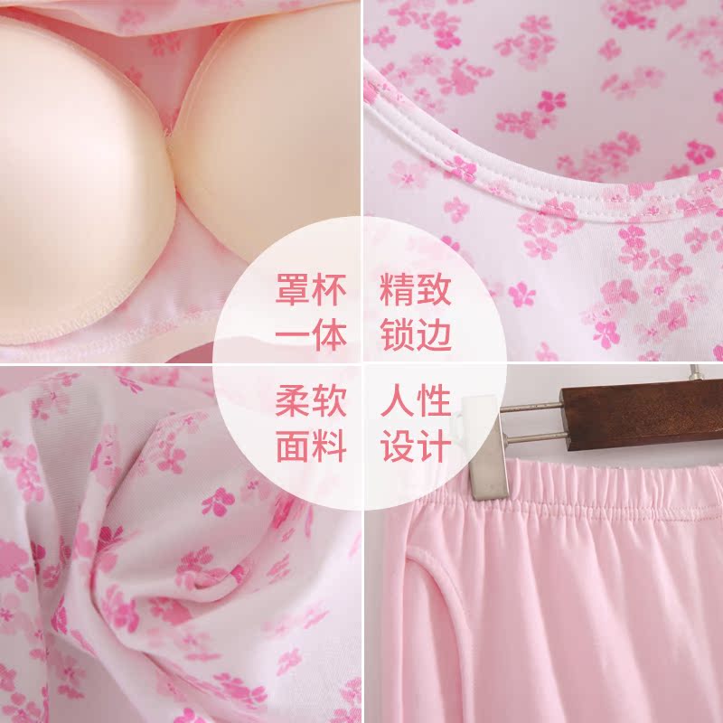 Autumn and winter new cotton women's cup one-in-one underwear-free shoulder strap chest pad long-sleeved trousers pajamas set Korean version of the home service
