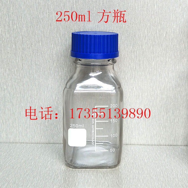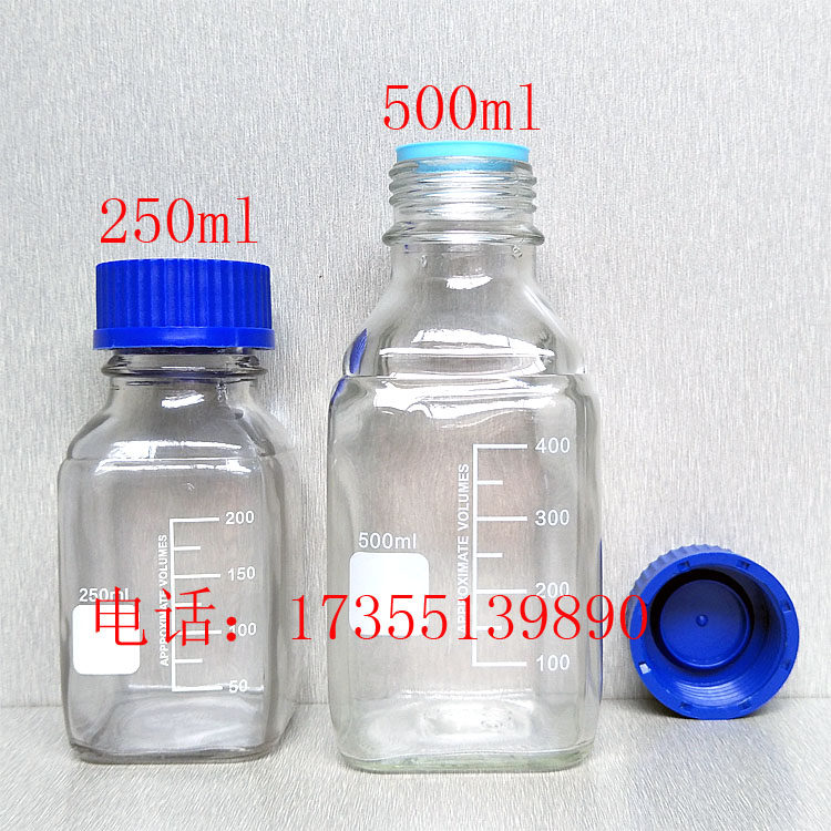 250ml500ml transparent blue cap reagent bottle square body bottle square bottle square bottle screw mouth bottle silk mouth bottle with scale