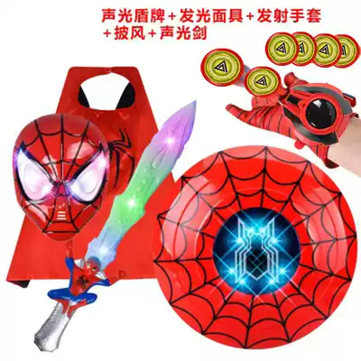 Spider Hero Man Glowing Mask Glove Transmitter Cloak Animation Children Men's Toy Set Halloween