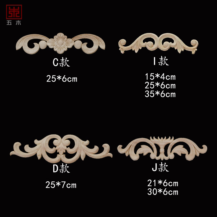 Solid wood European style long flower piece short patch Furniture TV background wall decorative flower piece Dongyang wood carving European style decal