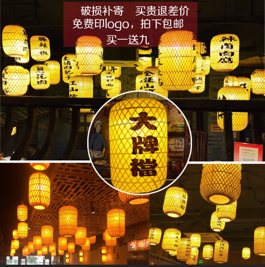 Handmade bamboo woven lampshade lantern chandelier Chinese imitation antique palace lamp hotel tea building guest house ancient town lamps