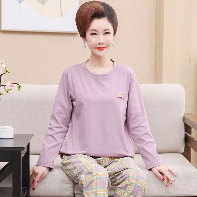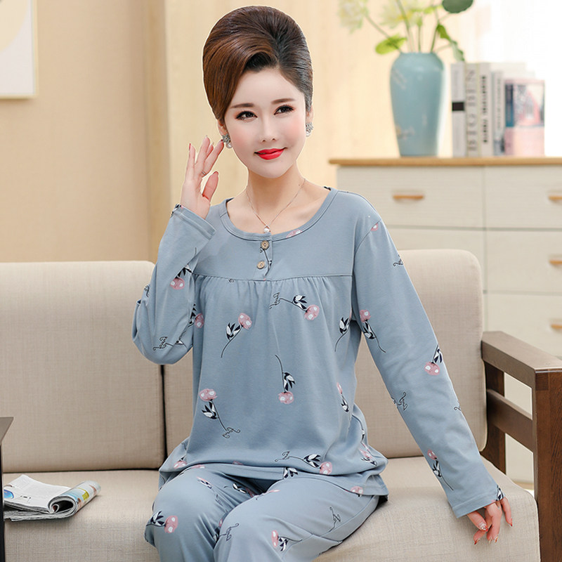 Autumn Winter Middle Aged Lady Mother Pure Cotton Long Sleeve Sleeping Clothes Spring Autumn Fat MM Plus Hypertrophy Size Easy Home Suit Suit