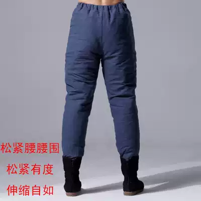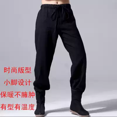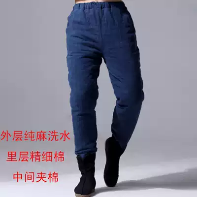 Winter Chinese style thickened warm outer wear cotton pants men's Chinese linen plus cotton fashion pipe pants elastic waist trousers