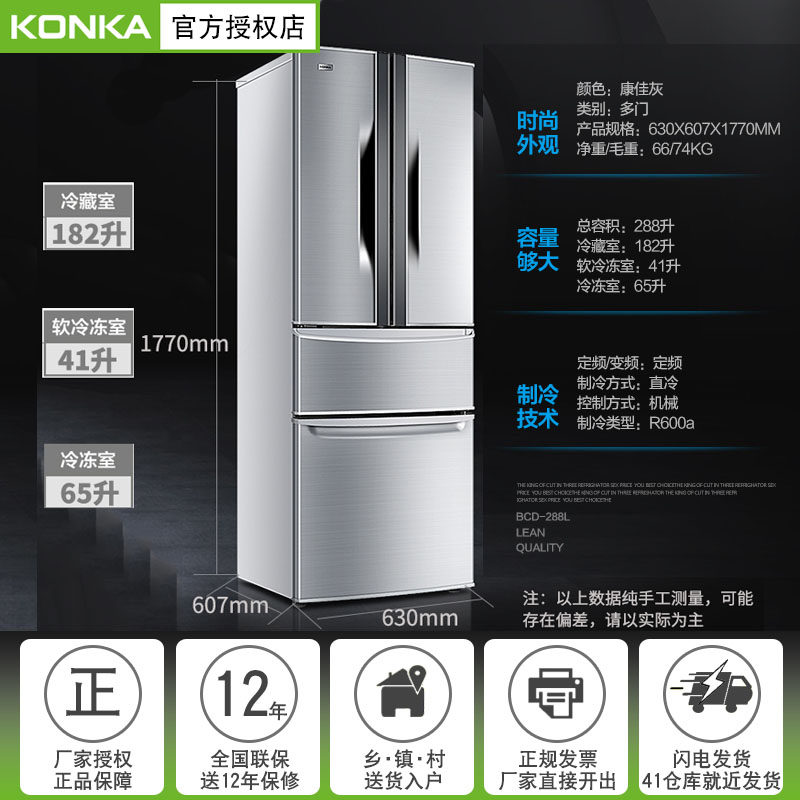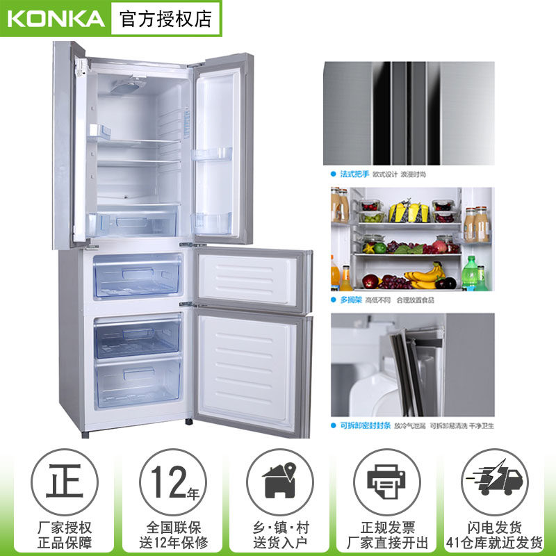 Konka 288 liter large three-door refrigerator home French multi-door double four-door double four-door rental small energy-saving refrigerator
