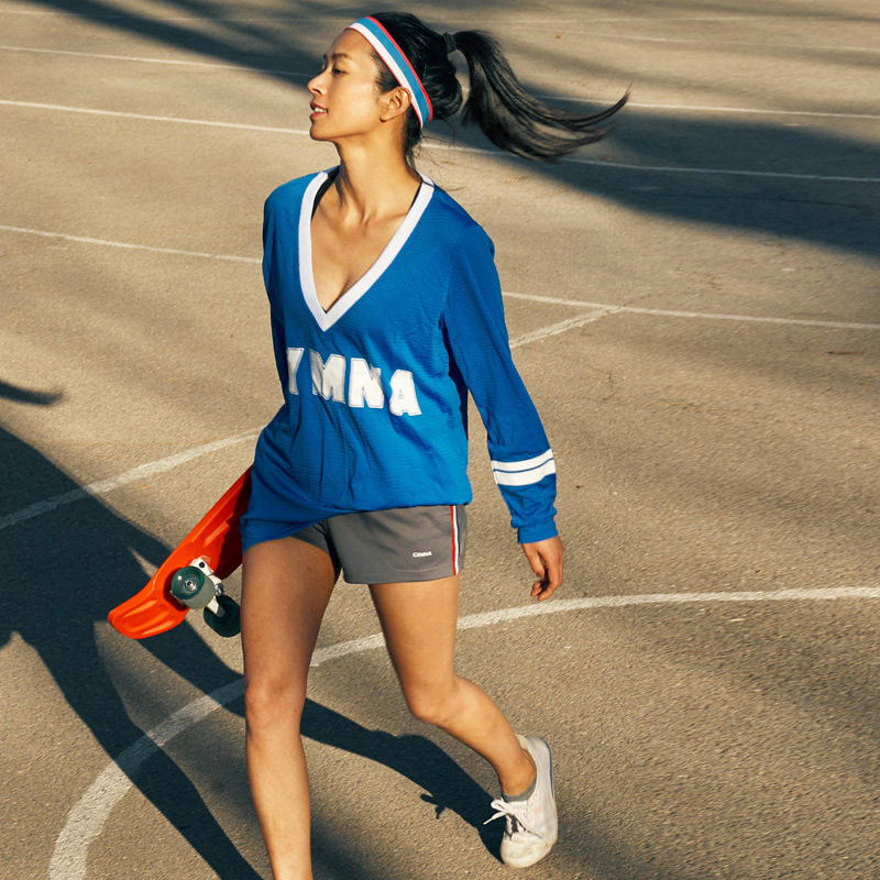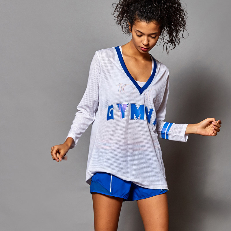 gymna retro campus wind sports long sleeve net hole speed dry training fitness casual blouse T-shirt spring long version female