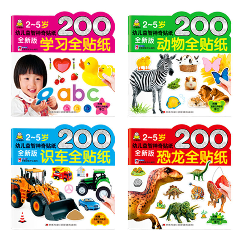 Set of 4 This small baby boy 2-5 years old Child Puzzle Magic Sticker Bestseller with Brain Sticker picture Baby Child sticky stickers Books Puzzle Early Education Toys 2-3-4-5-6 Year Old Dinosaur Sticker Book