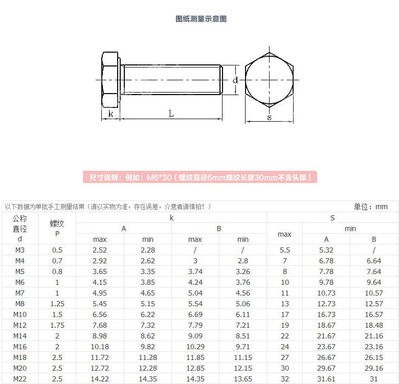 8 8 8 level outer hexagonal screw bolt screw full tooth half tooth M16 * 25 30 30 40 40 50-150
