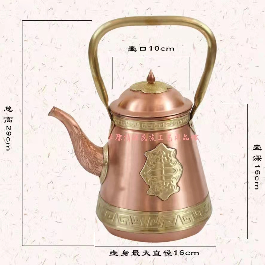 Mont Dining Handmade Copper Pot Mongolian Elements Pure Copper Milk Teapot Inner Mongolia Featured Ethnic Wind tableware Monchery Supplies