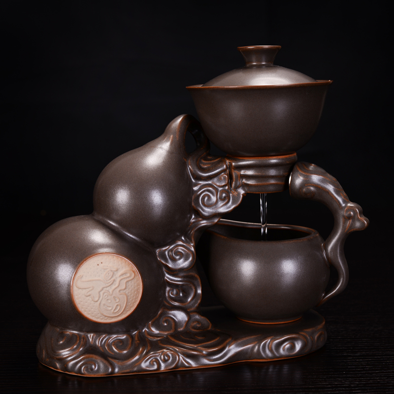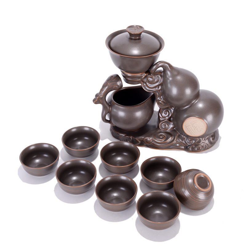 Gourd purple sand retro semi-automatic tea set set lazy kung fu tea maker household ceramic set