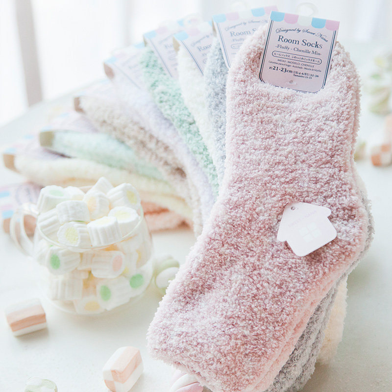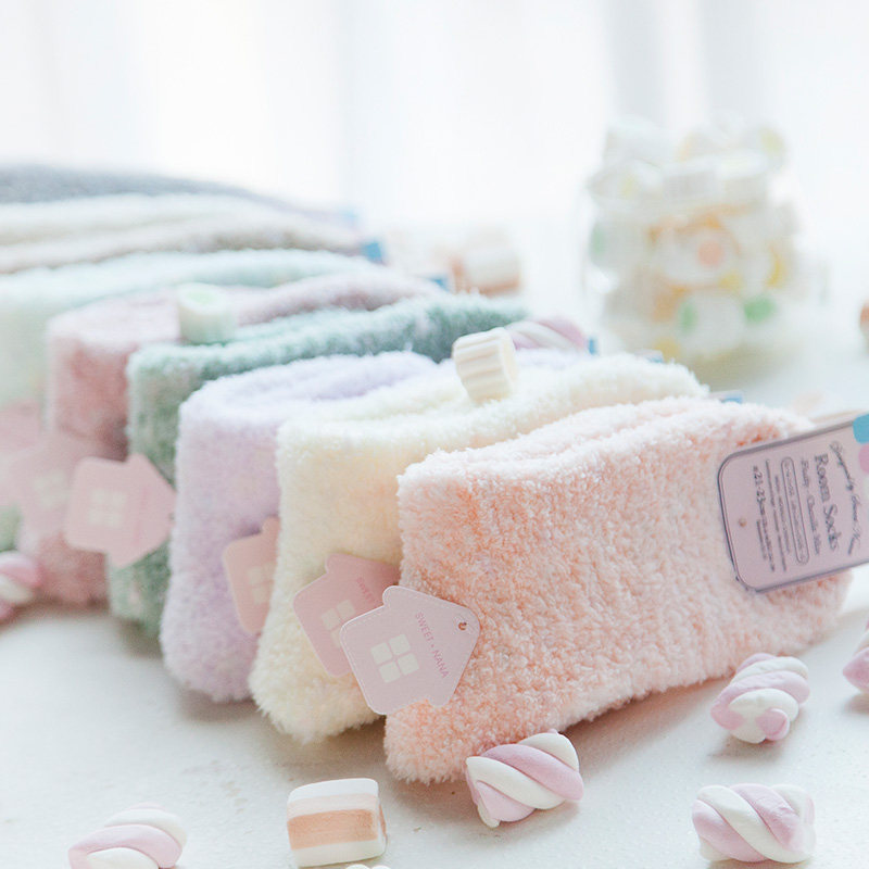 Japanese cute coral fleece socks women's autumn and winter mid-tube socks thickened warm home floor sleep socks women's confinement socks