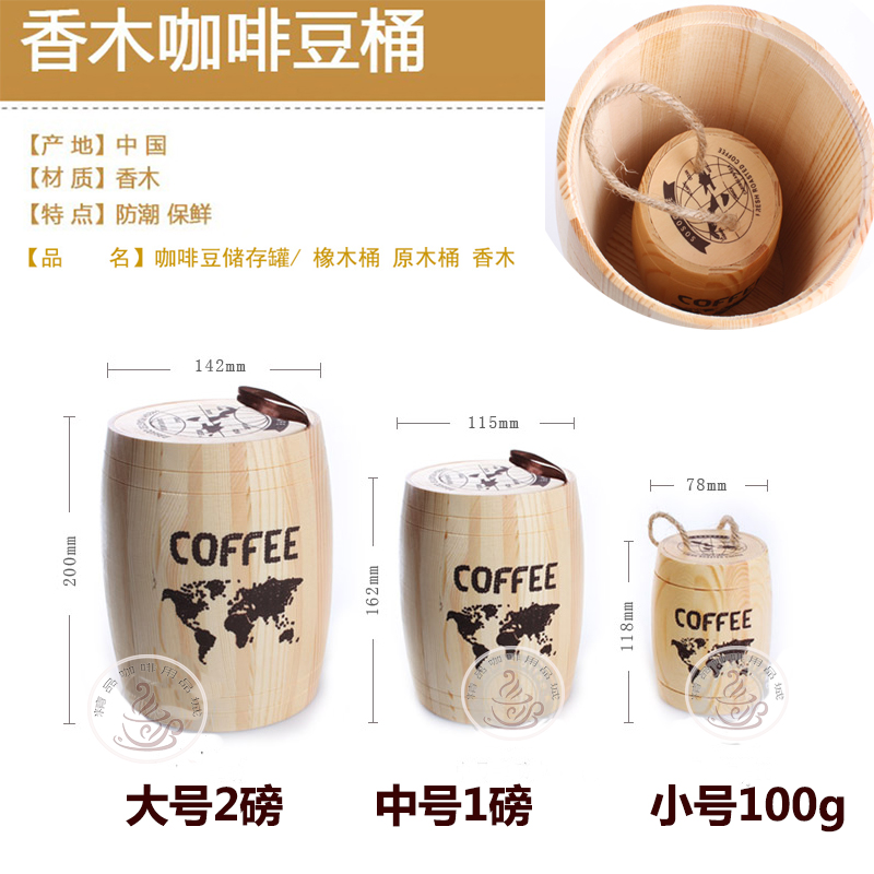 100g wooden barrel small one pound wooden barrel medium 2 pound wooden barrel large half pound Blue Mountain coffee bean half pound Mandheling coffee bean half pound Colombian coffee bean half pound Mocha half pound Brazilian 1 pound coffee bean remarks wind