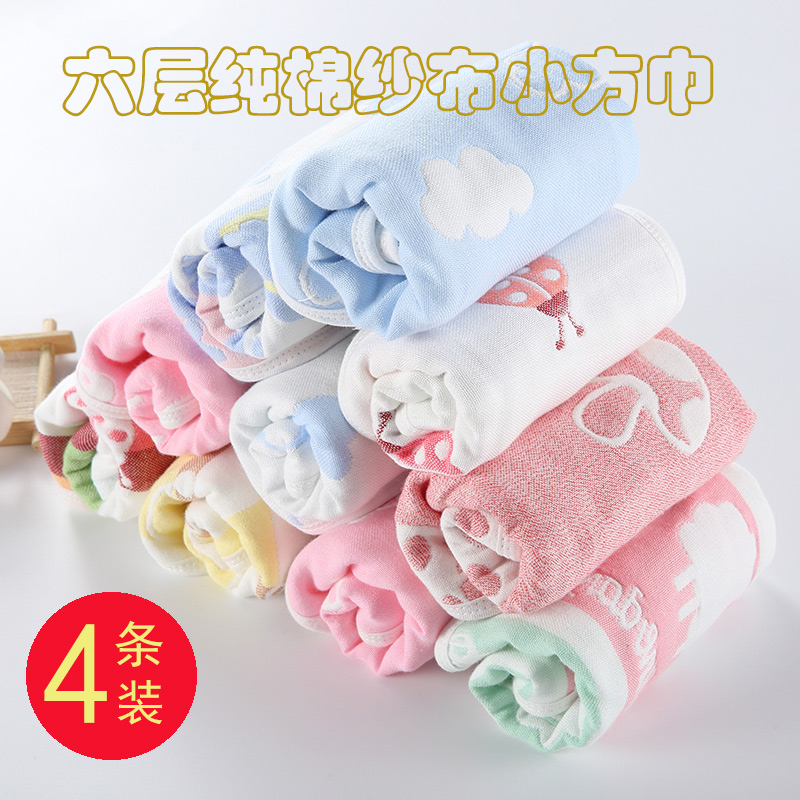 4 packs of baby handkerchiefs, small handkerchiefs, 6 layers of pure cotton gauze, baby saliva towel, newborn children's face towel, small square towel