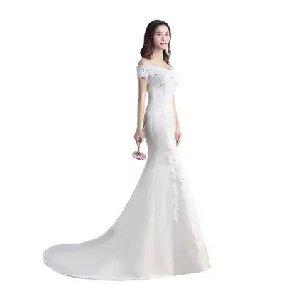 Light wedding dress 2021 new bride Princess word shoulder line wedding dress dress temperament slim slim fishtail tail tail