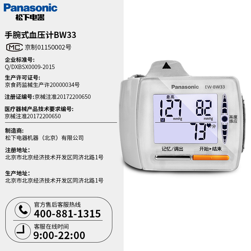Panasonic electronic sphygmomanometer Domestic elderly fully automatic high precision wrist type medical instrument BW33