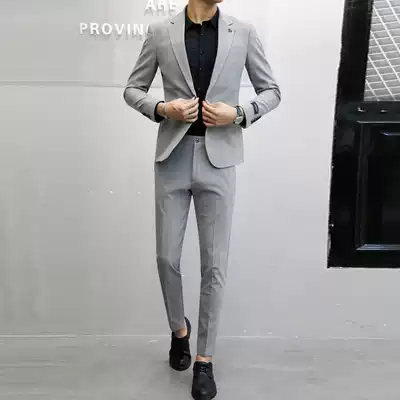 Autumn suit suit suit men's tide casual Ruffian handsome Korean version of self-cultivation Young dress best man married handsome small suit man
