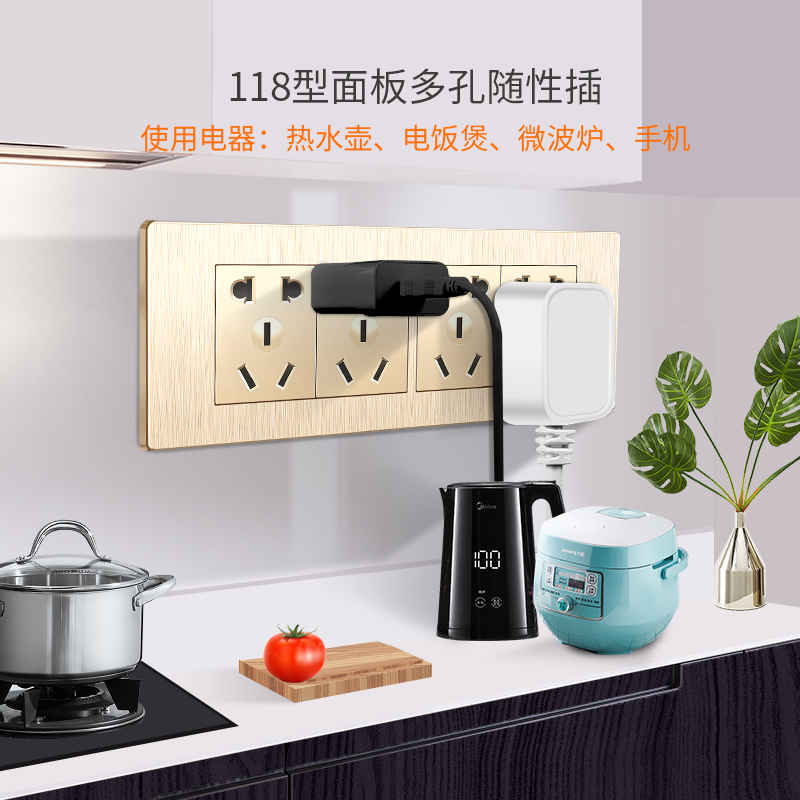 (Two freshmen open) International Electrician 118 type switch socket panel wall champagne gold large plate open