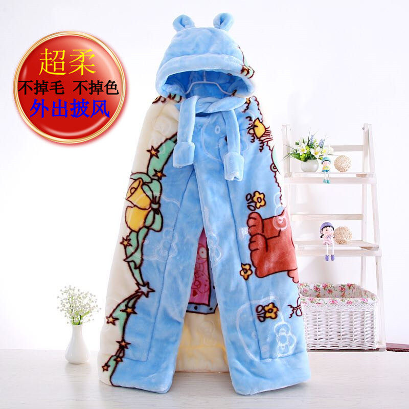 Baby blankets cloak cloak with velvety thickened autumn and winter baby bag quilt with blanket male and female out windproof shawl-Taobao