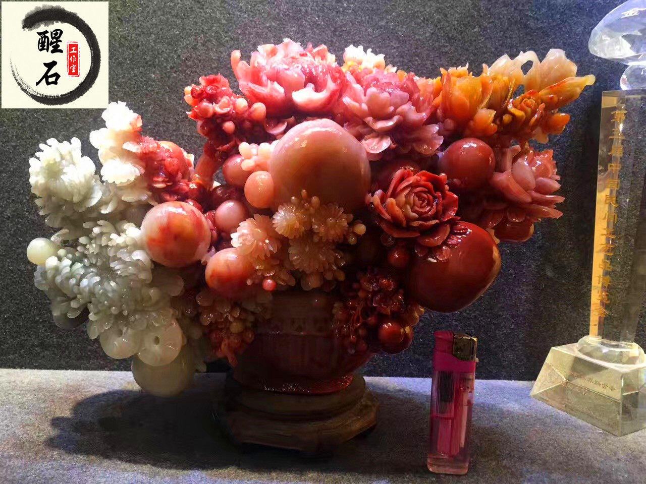 Shoushan Stone Carving Swing Piece < Flower Open Rich > hibiscus natural stone carved flower bird table swing piece original stone special price customized