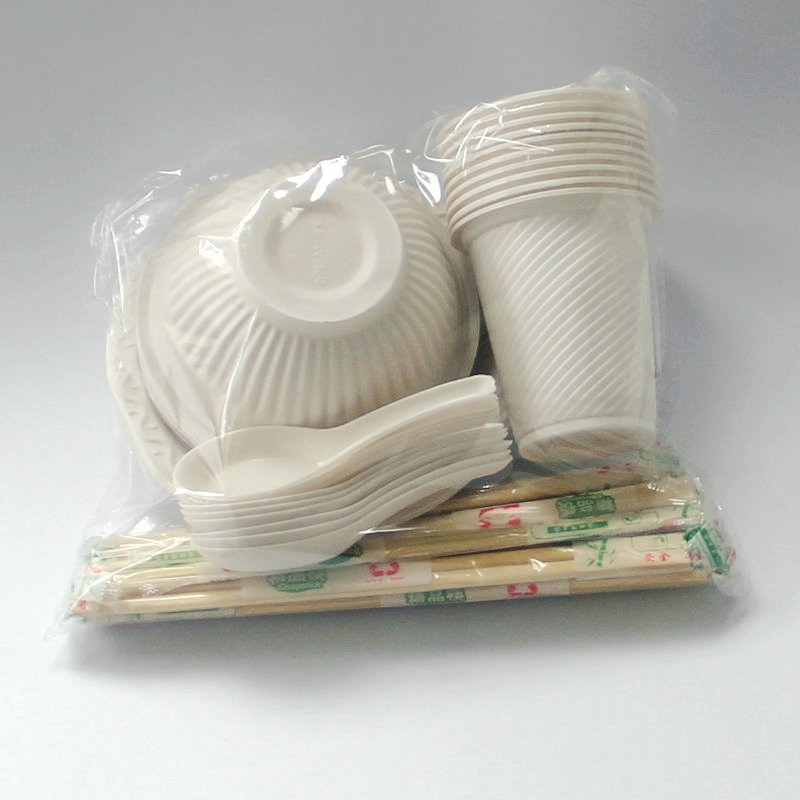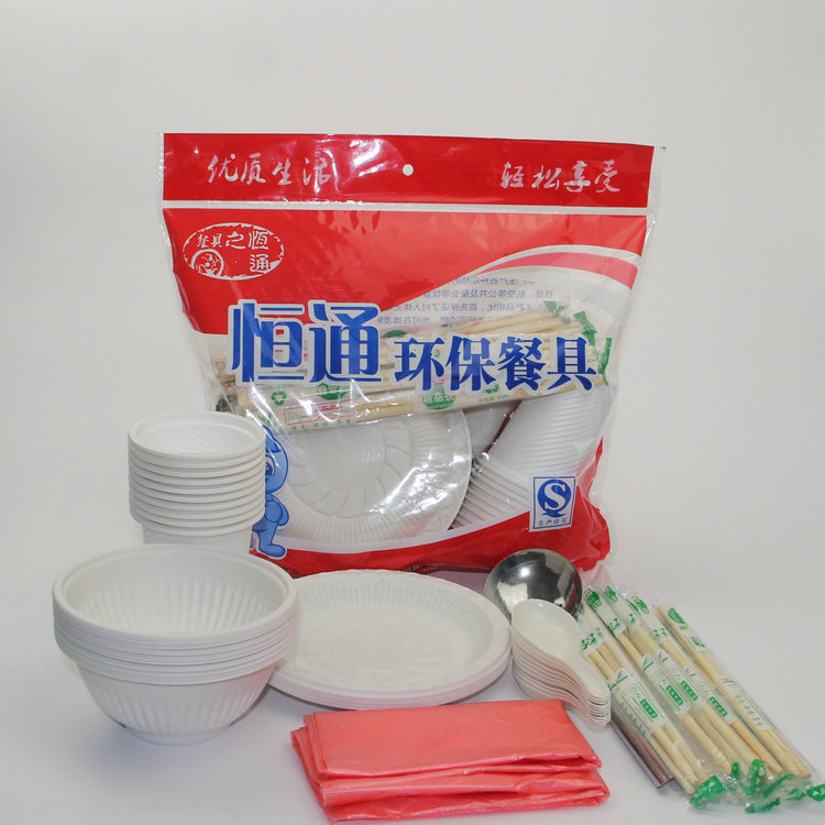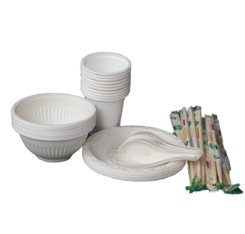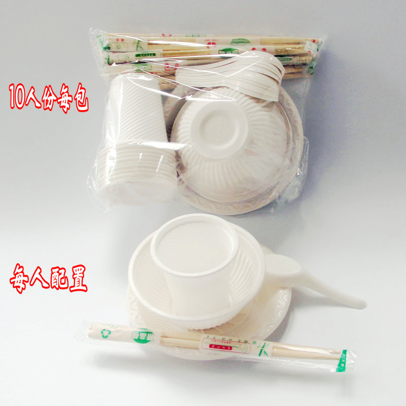 Biodegradable disposable bowls and chopsticks Banquet set for 10 people Household tableware knives and forks plates outdoor barbecue plates cups and spoons