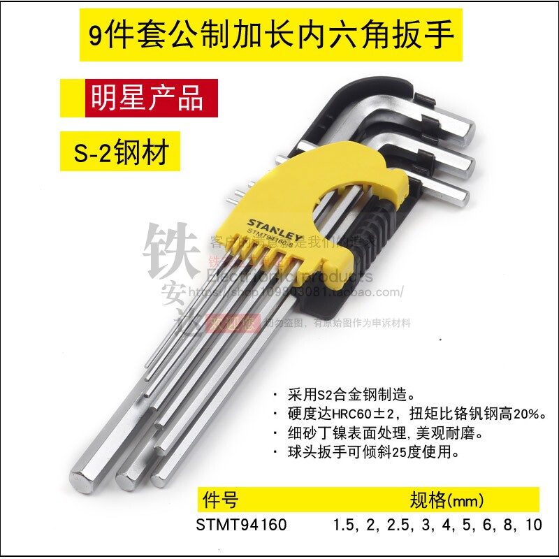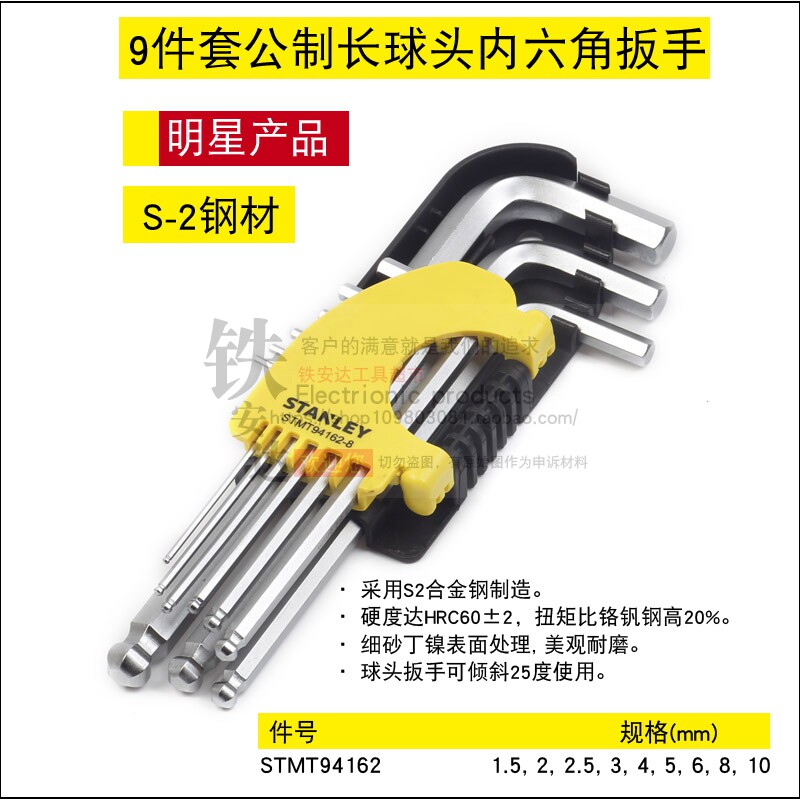 Stanley 9-piece set STMT94158 Ball head flat head hex wrench 94162 94160 92619 8 23