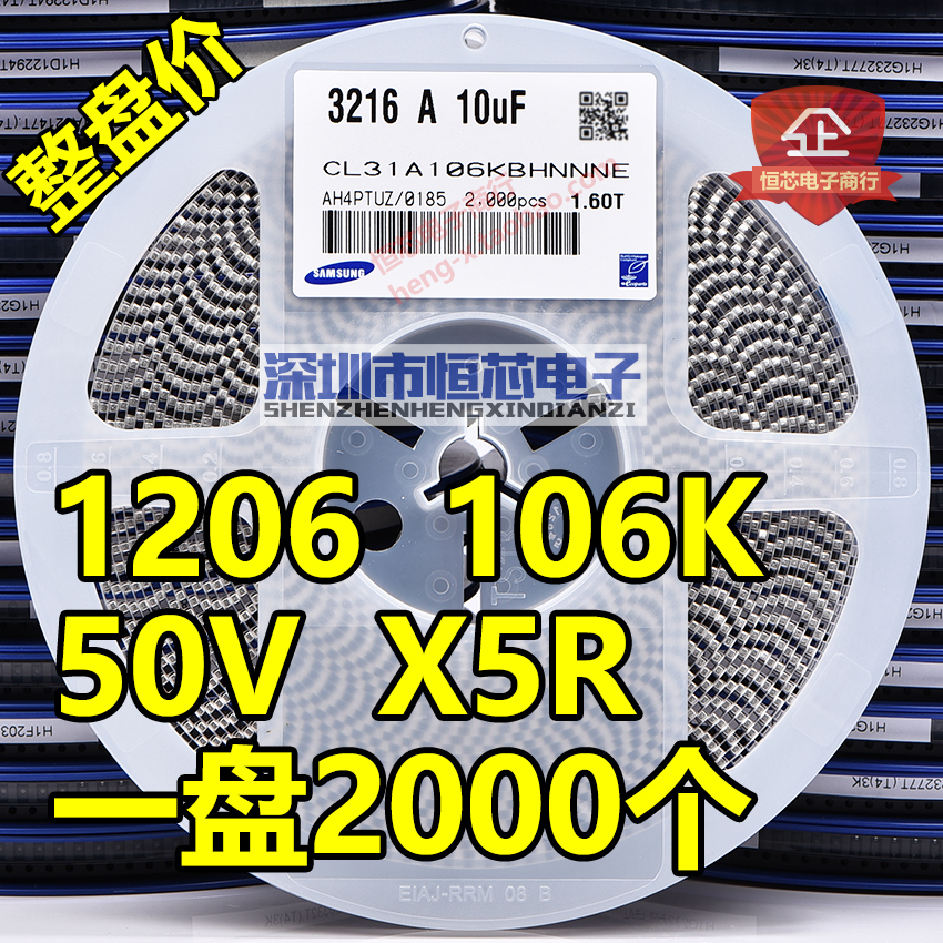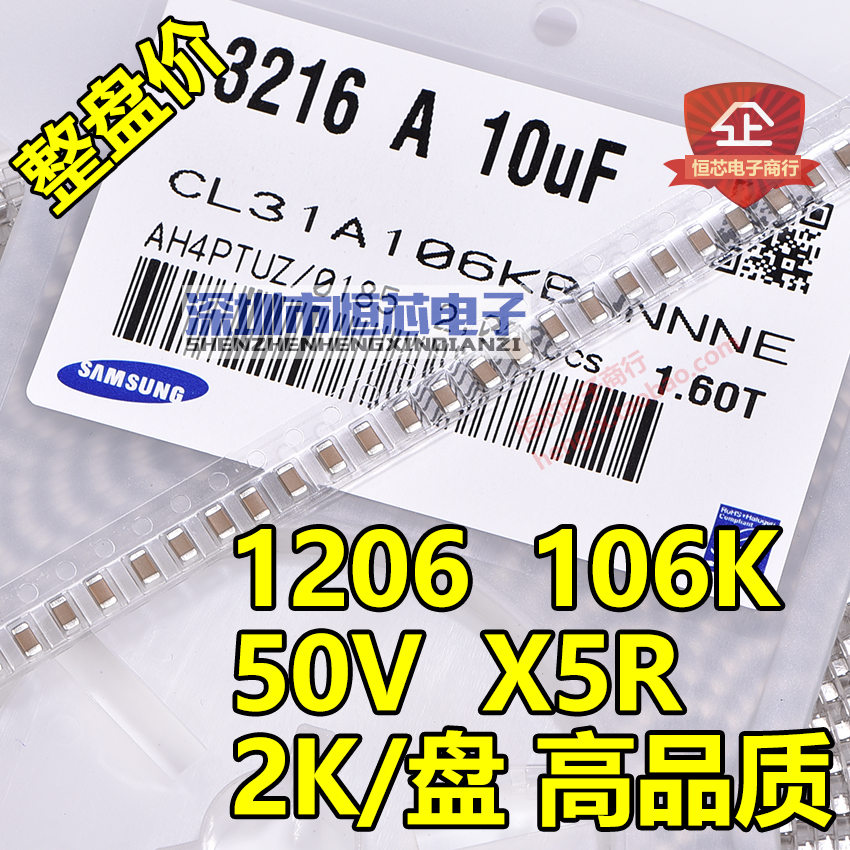 Chip capacitor 1206 106K 25V 50V 10UF X5R K 10% ceramic 2000 discs
