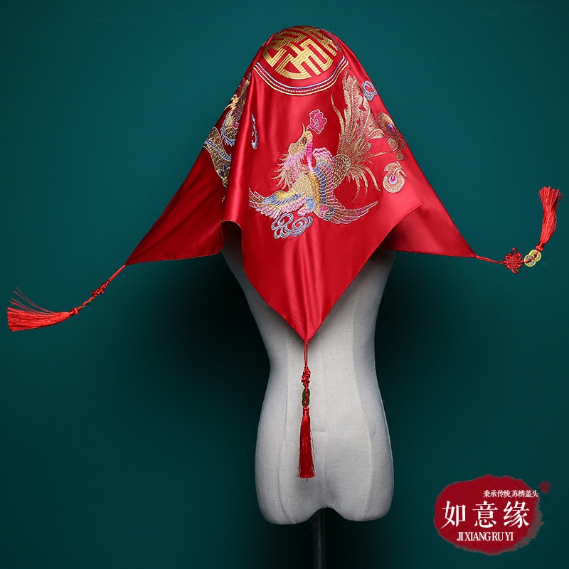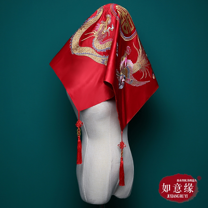 Bride red hijab Chinese bride wedding red hijab wedding 2017 new classical embroidery Xiuhe clothing hijab