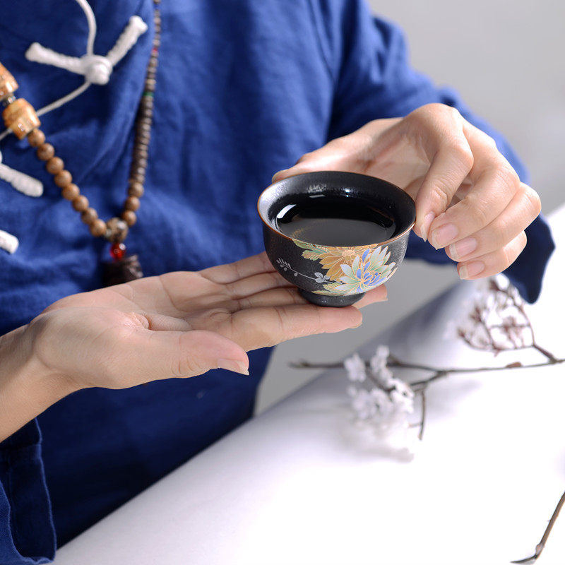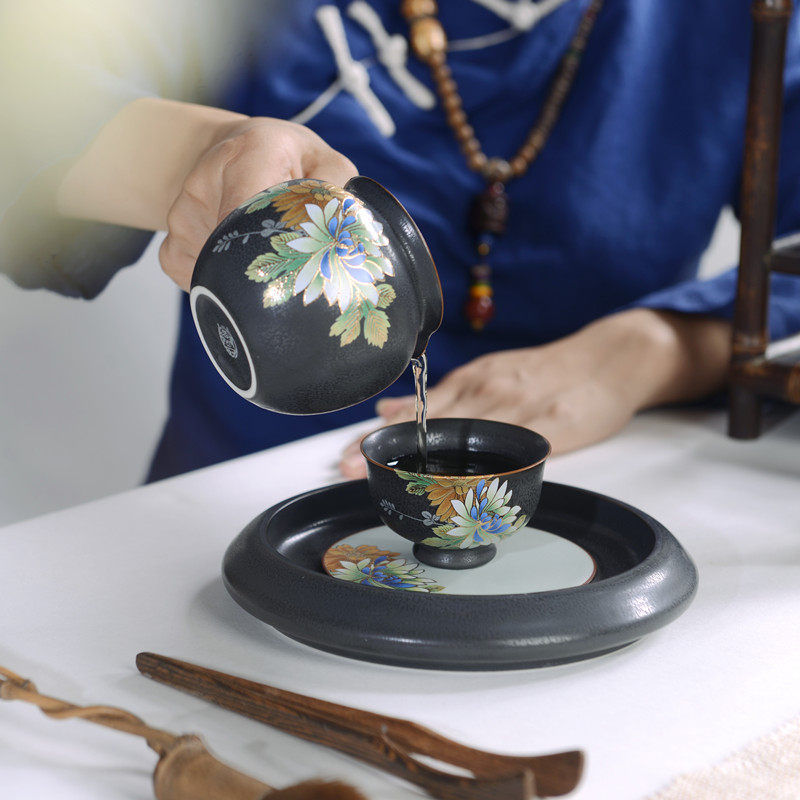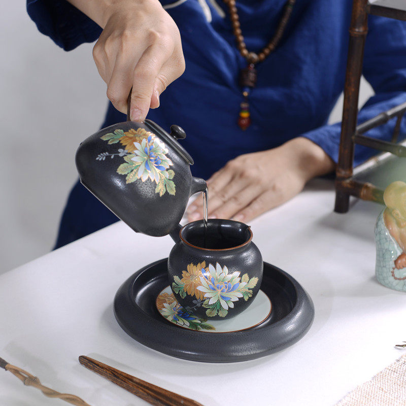 Ceramic kung fu Japanese-style wooden handle side pot Tianmu glaze kiln becomes grilled teapot teacup tea set gift box