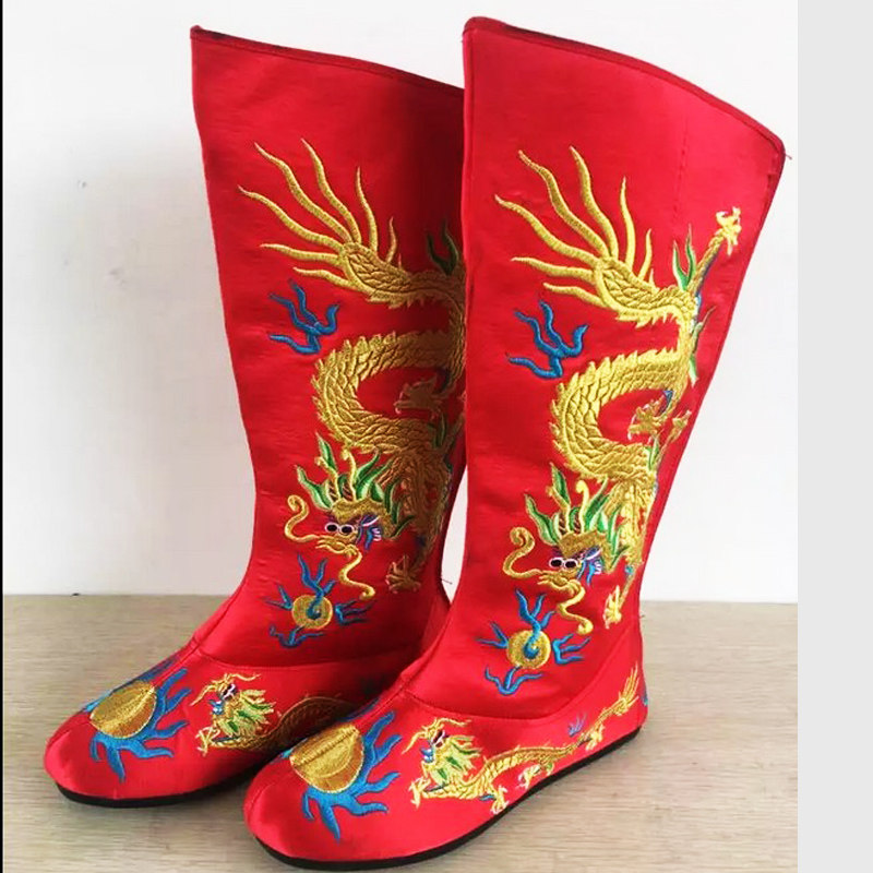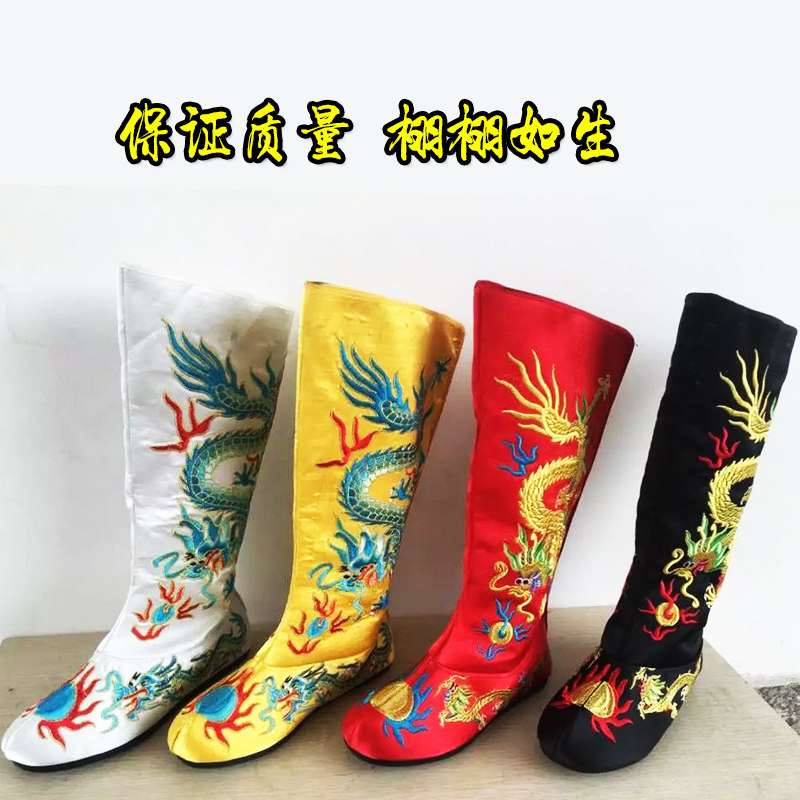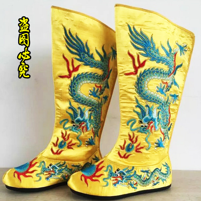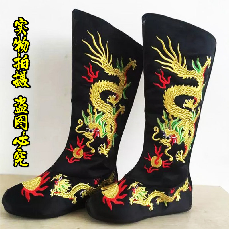 Ancient shoe cosplay embroidered dragon boots ancient dress Emperor Empress shoes Officer boots Long boot Sichuan Opera Changing Face Dragon Boots