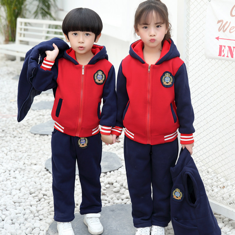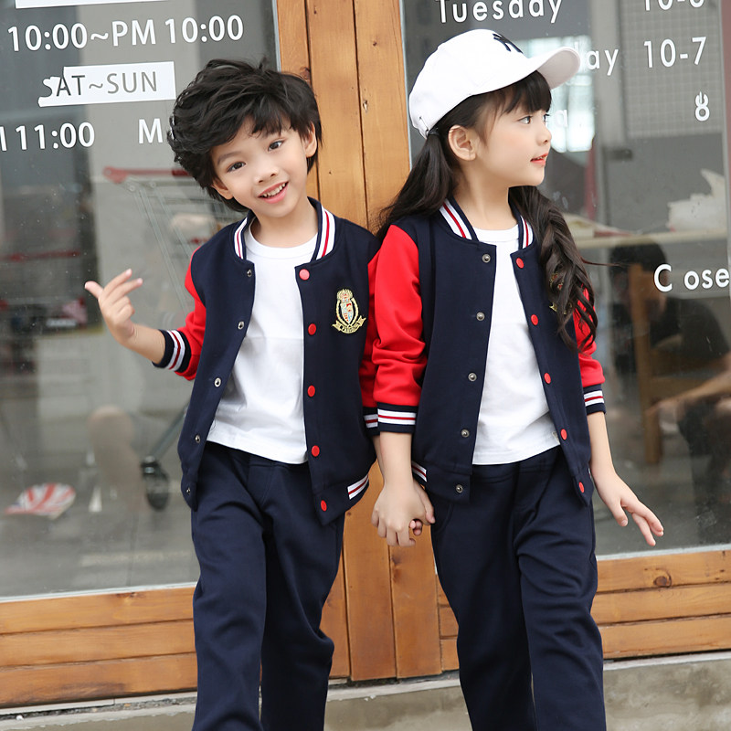 Kindergarten garden clothes Spring and autumn and winter thickened three-piece set of primary school uniforms British style children's class clothes Cotton suit