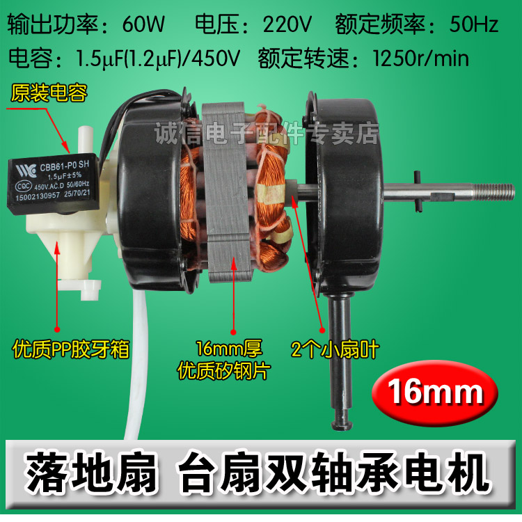 Electric fan motor Double ball bearing bench fan motor Floor fan motor Head 16mm steel sheet