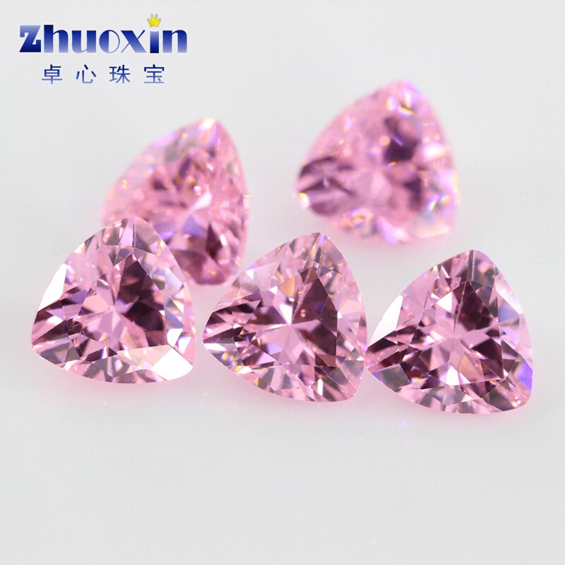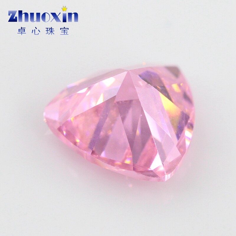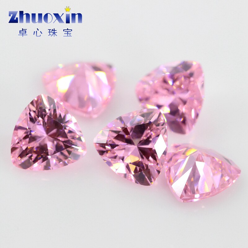Fat Triangle Pink Zircon Naked Stone Withdrawal Face Fat Triangle CZ Swiss Diamond Jewellery Ear Pin Ring Main Stone