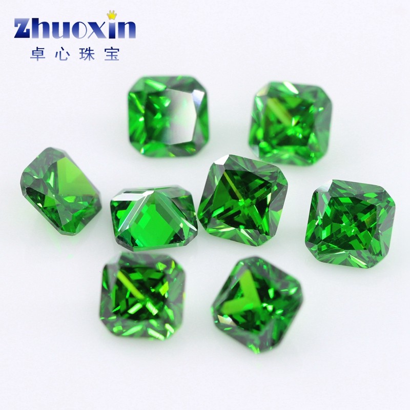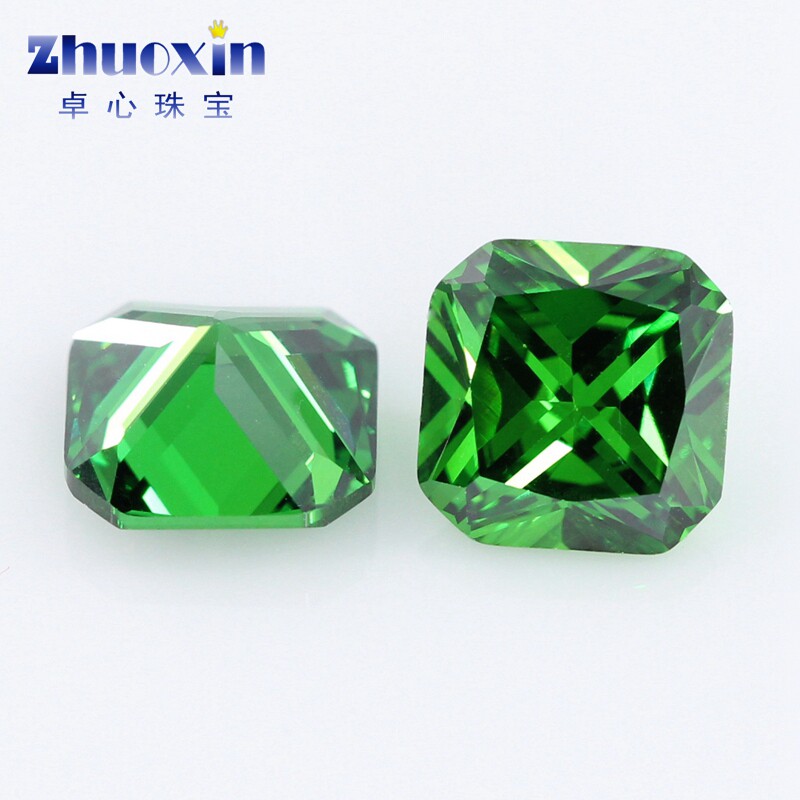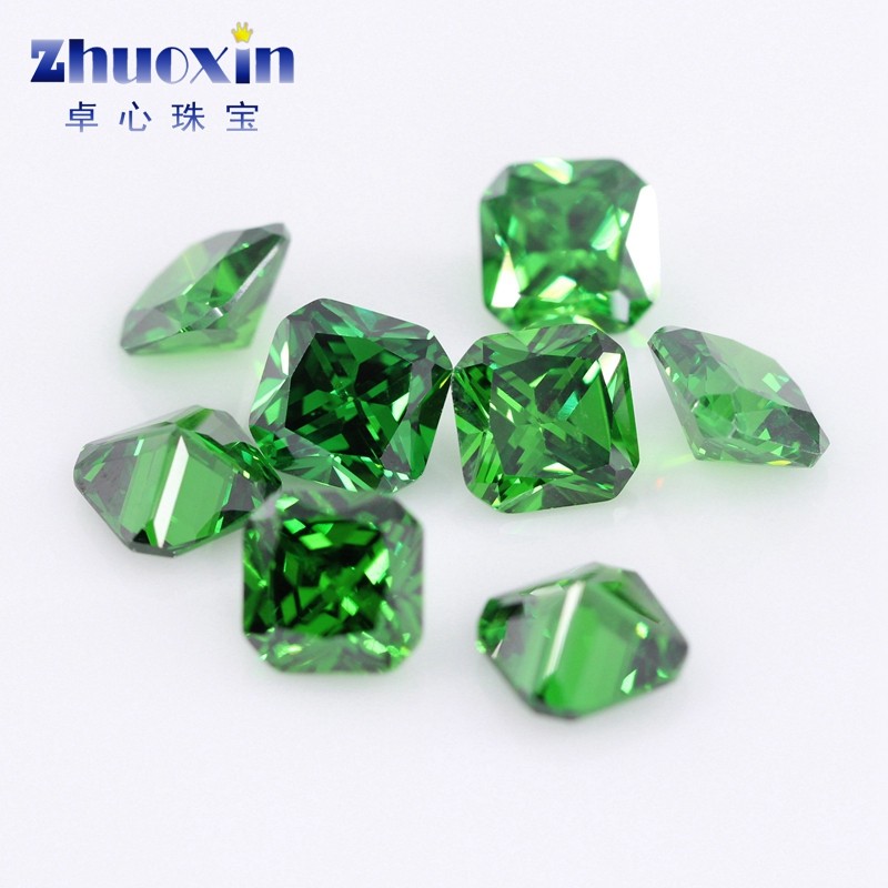 Square chamfered green zirconia bare stone ring face Emerald green CZ cubic zirconia small octagonal imitation diamond gemstone