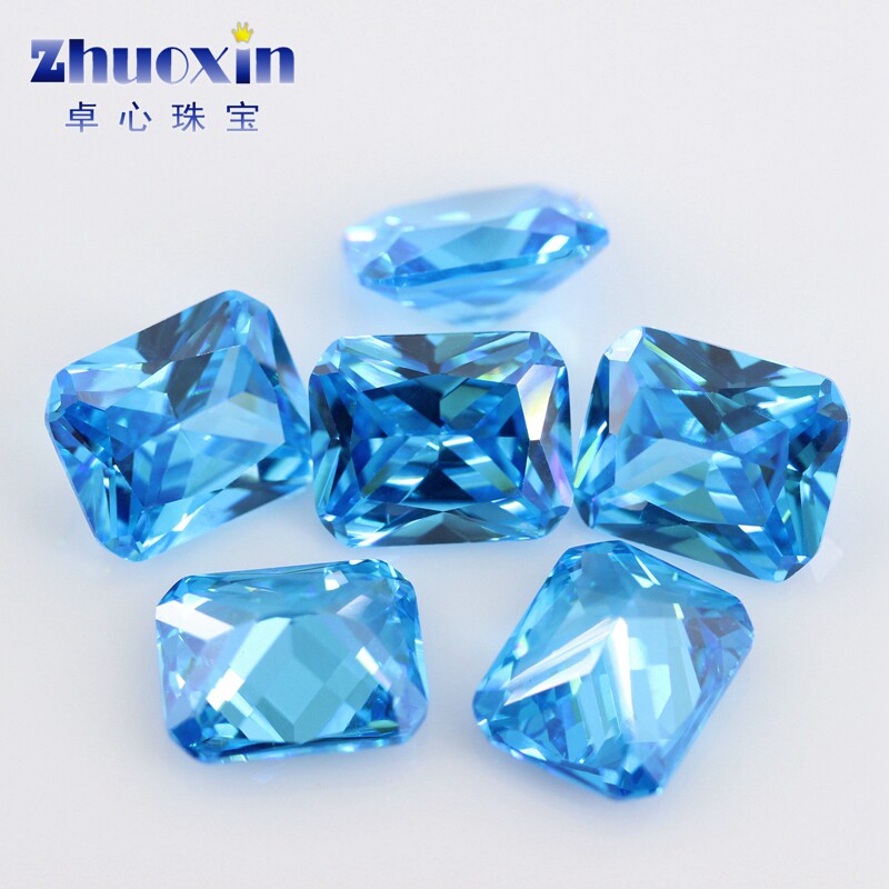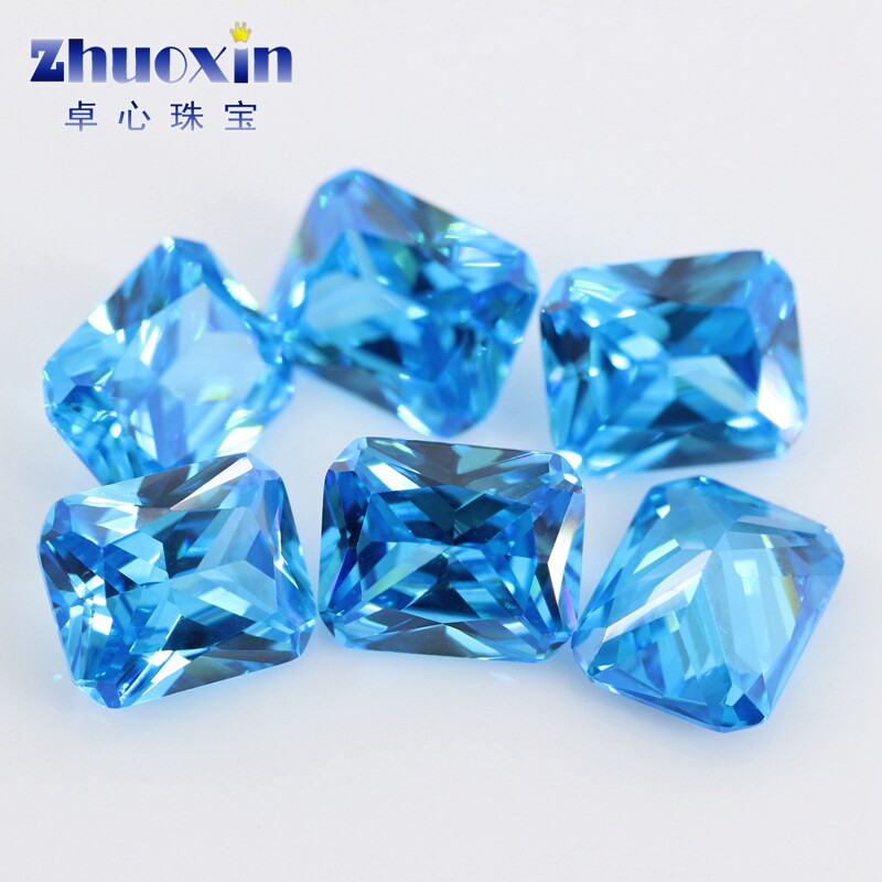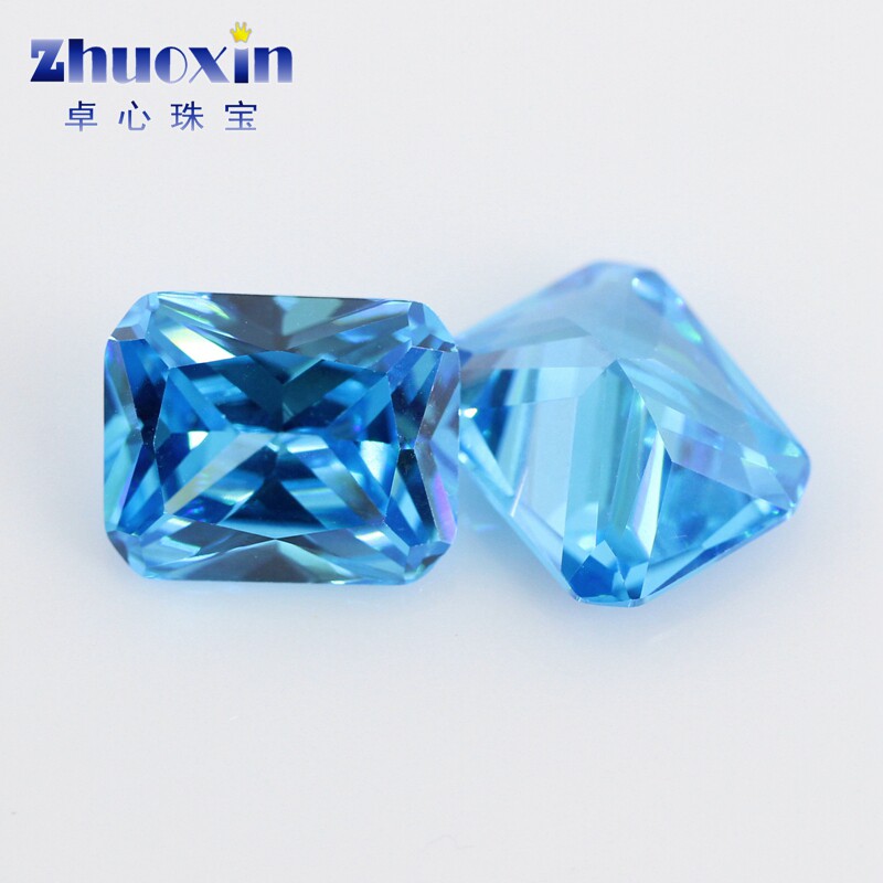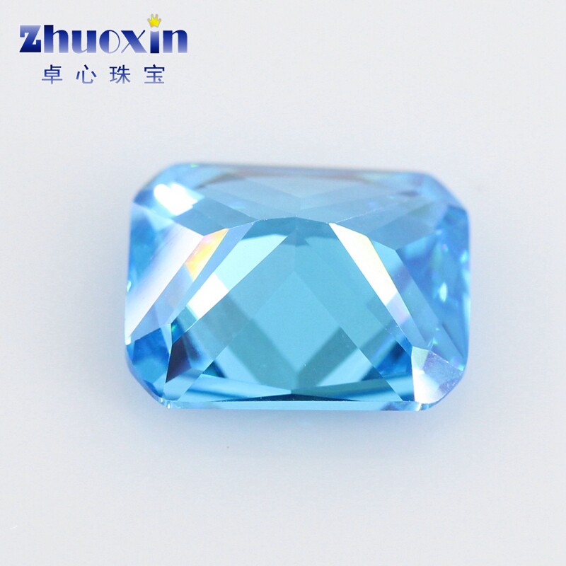 Rectangular chamfered sea blue sky blue zircons nude stone ring surface sea blue zircons artificial jewellery CZ imitation diamond DIY