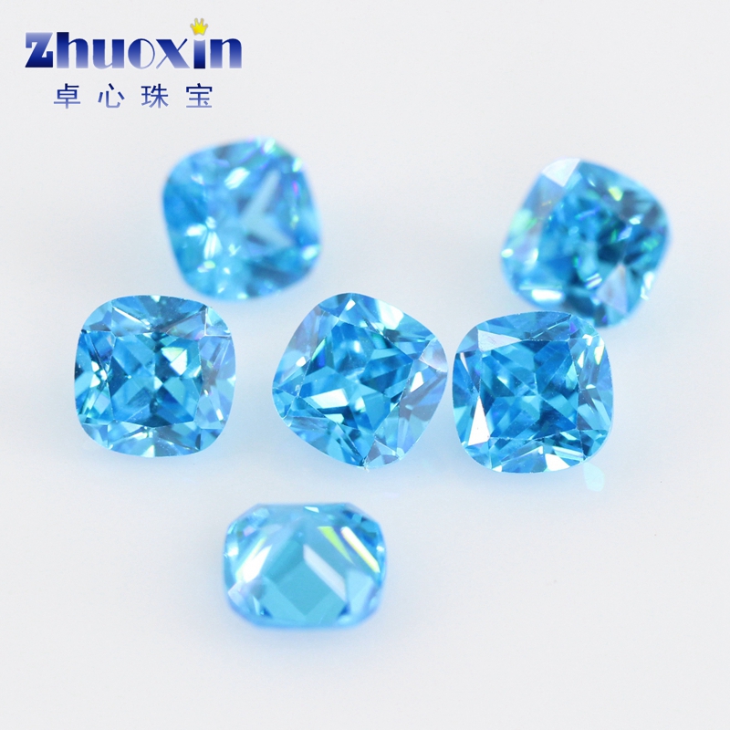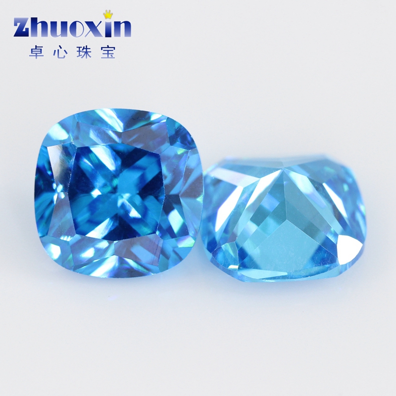 Sea blue sky zircon sapphire original naked stone fertilizer square pillow - shaped artificial CZ - shaped diamond matching stone