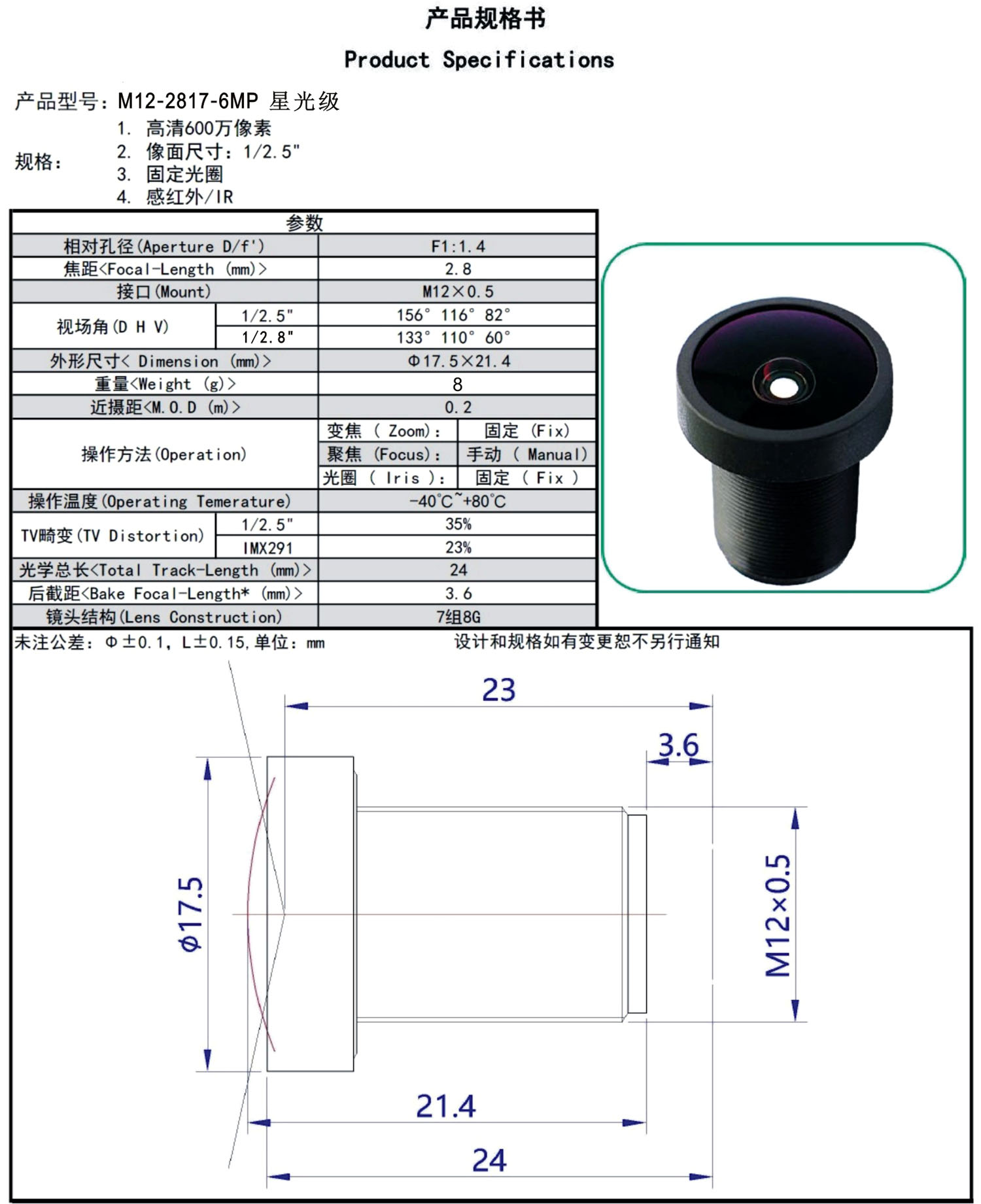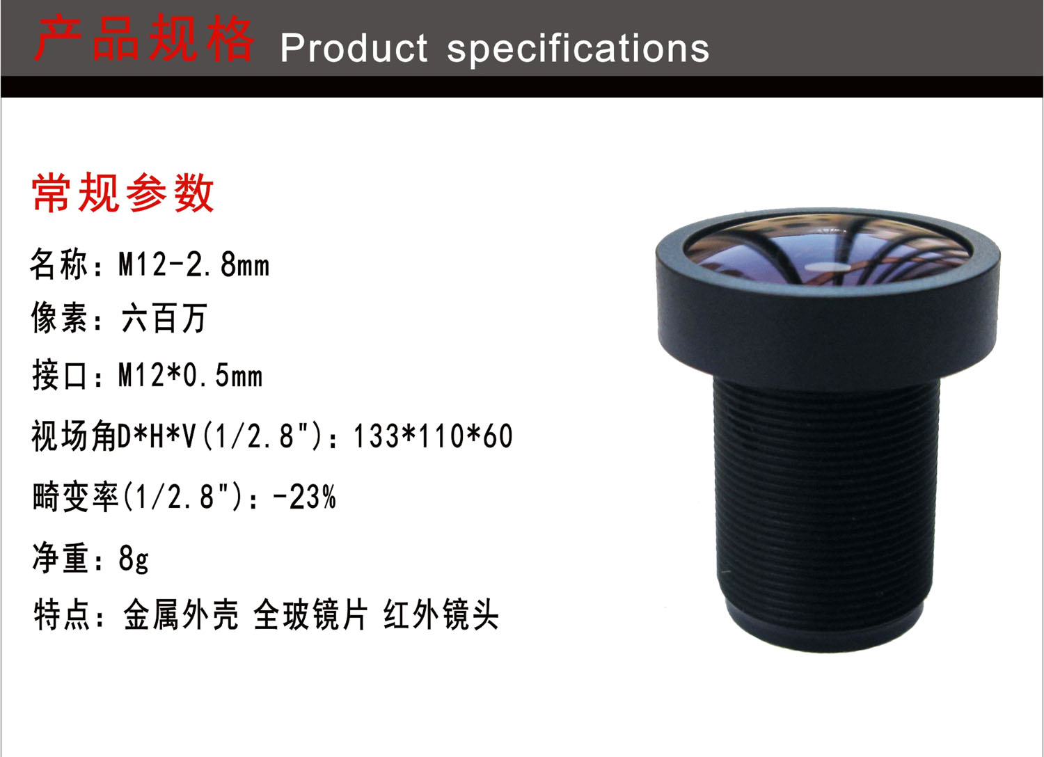 6 million HD 1 2 5 star light grade micro-light full-pitch M12 interface infrared lens 2 8MM wide angle