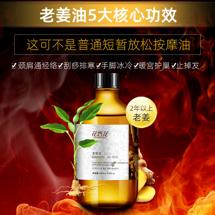 Ginger essential oil massage full body through the meridian open back scraping Ginger wormwood body massage massage oil 500ml