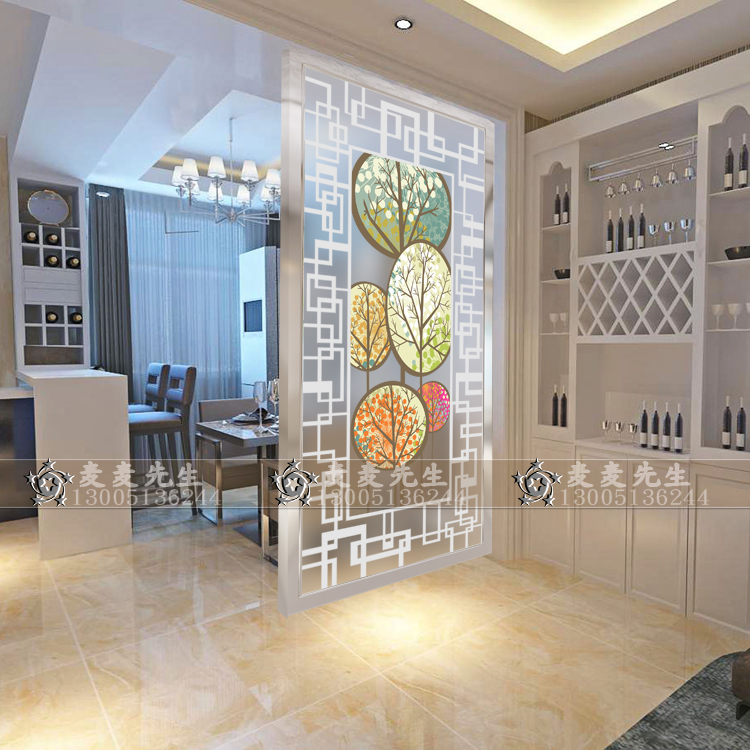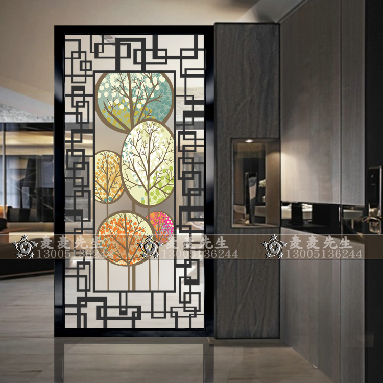 Eurostyle Art Glass Screen Partition Double-sided Effect Light Transmission Modern Minimalist Style Living Room Abstract Picture Happiness Tree