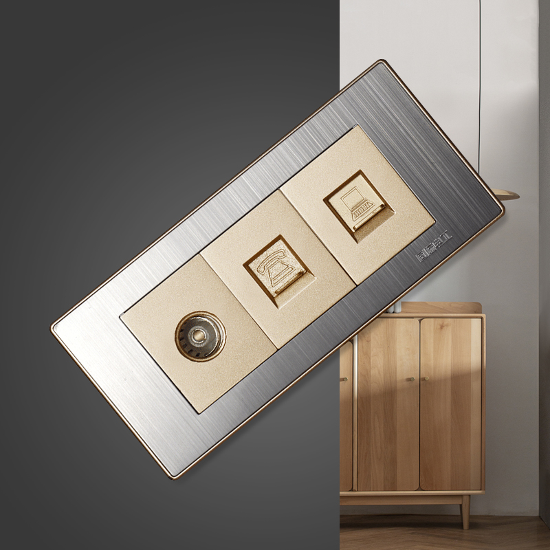 (Three TV Phone PCs) International Electroelectrics 118 Type of switch socket Panel Stainless Steel Wire Drawing Household