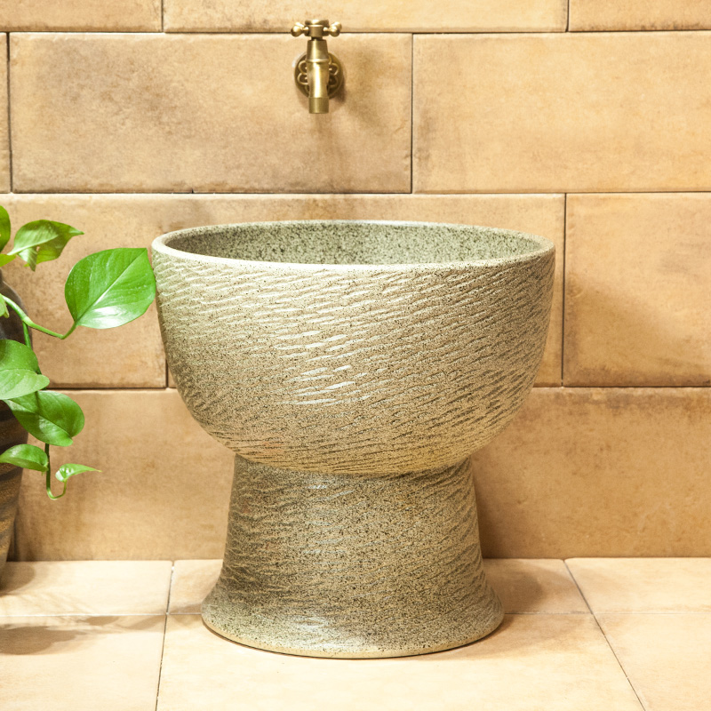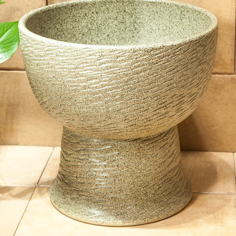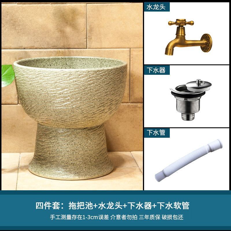 Retro Balcony Mop Pool Art Ceramic Ground Drag Basin Makeup Room Mopping Basin Integrated Large Mound Clog Pool 41cm Skew Engraving