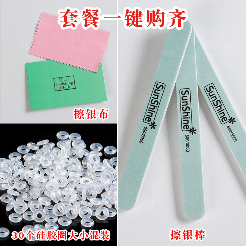 Set 1=30 rubber ring + 2 silver cloth + 1 silver stick (rubber ring size mixed)